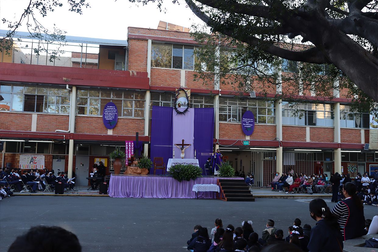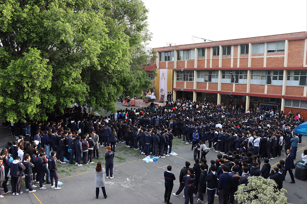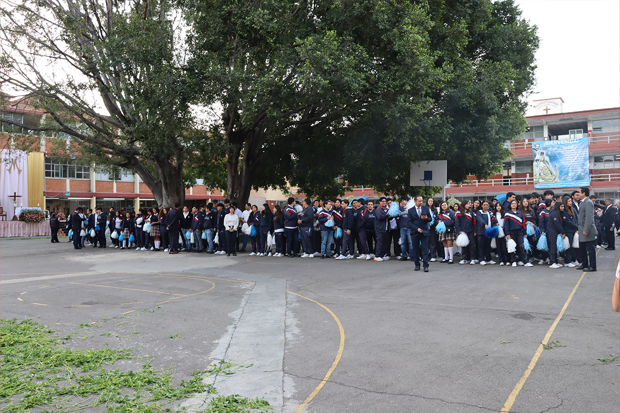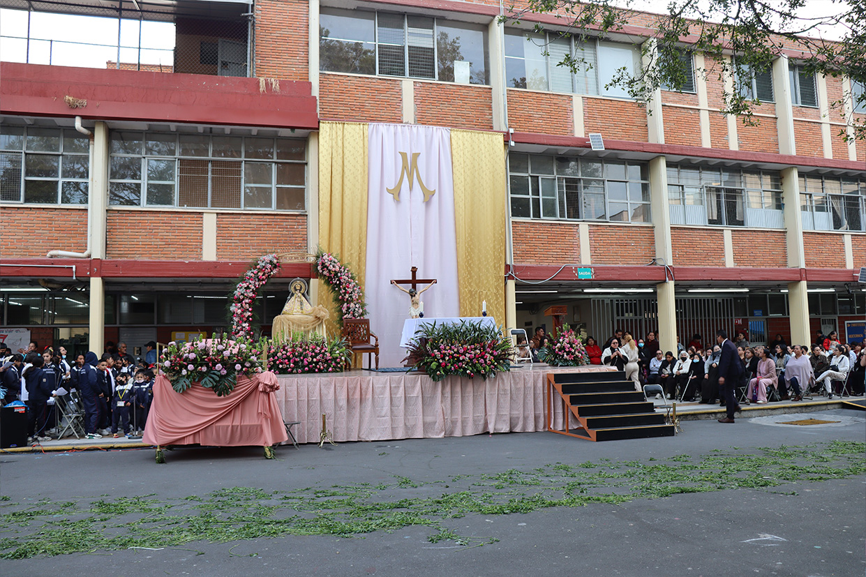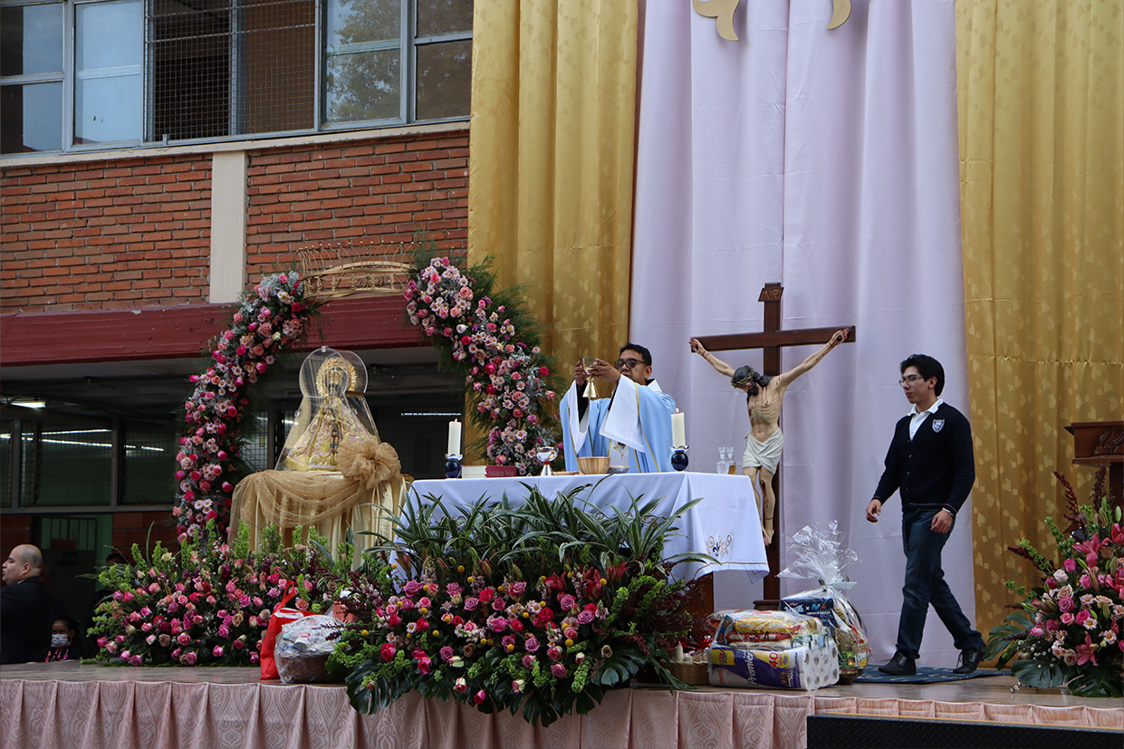 Se realizó el día 12 de diciembre en el patio cívico de la institución con el objetivo de honrar y recordar a la Virgen de Guadalupe en este día de fiesta nacional, mediante la celebración el Santo Sacrificio de su hijo Jesús, para cultivar en nuestros alumnos la devoción a Nuestra madre de Guadalupe, a la morenita del Tepeyac, en el entendido que a Jesús se llega más fácil por María su madre, que Jesús es Nuestro Dios y Salvador, único mediador, a Él la gloria y el poder por los siglos de los siglos.