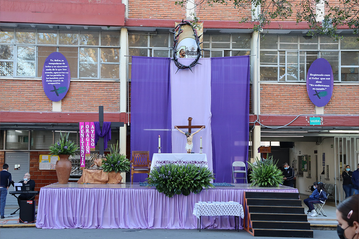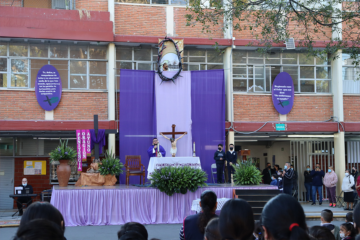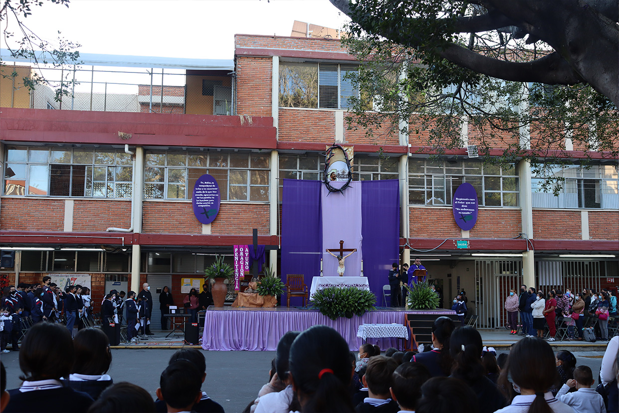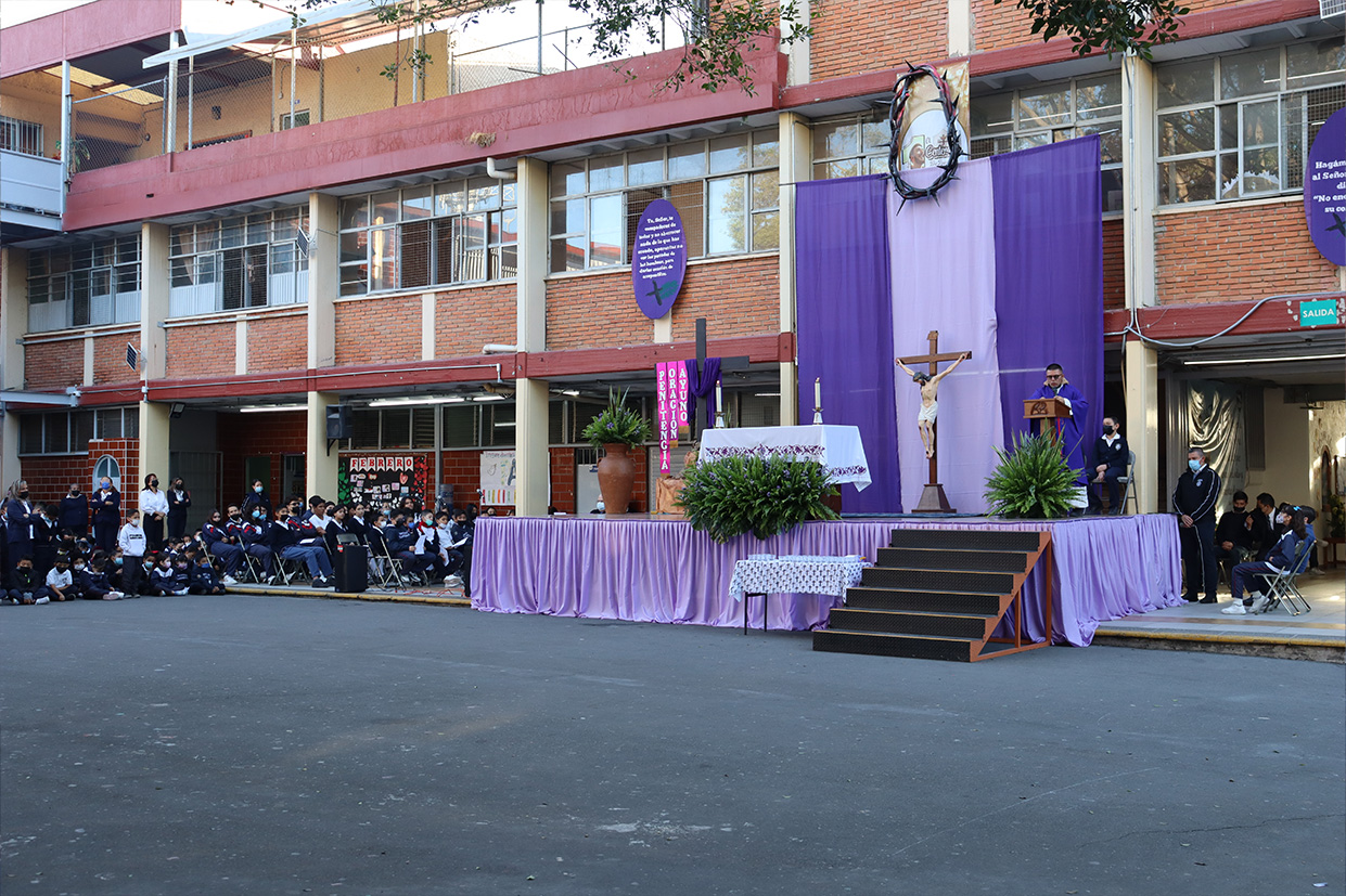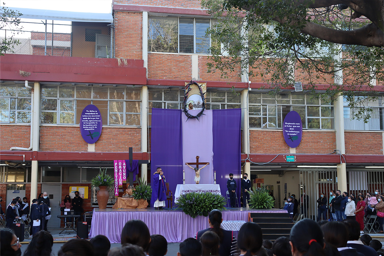 Se realizó el día 12 de diciembre en el patio cívico de la institución con el objetivo de honrar y recordar a la Virgen de Guadalupe en este día de fiesta nacional, mediante la celebración el Santo Sacrificio de su hijo Jesús, para cultivar en nuestros alumnos la devoción a Nuestra madre de Guadalupe, a la morenita del Tepeyac, en el entendido que a Jesús se llega más fácil por María su madre, que Jesús es Nuestro Dios y Salvador, único mediador, a Él la gloria y el poder por los siglos de los siglos.
