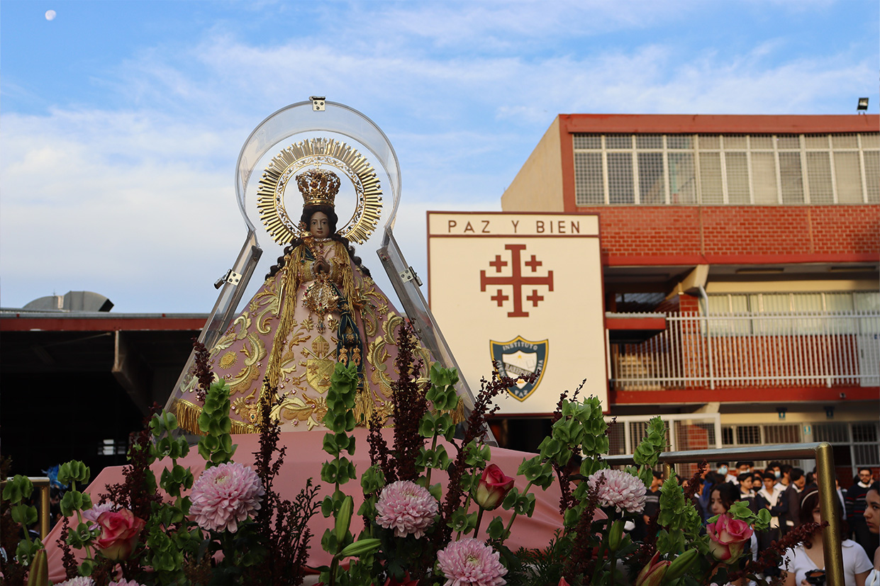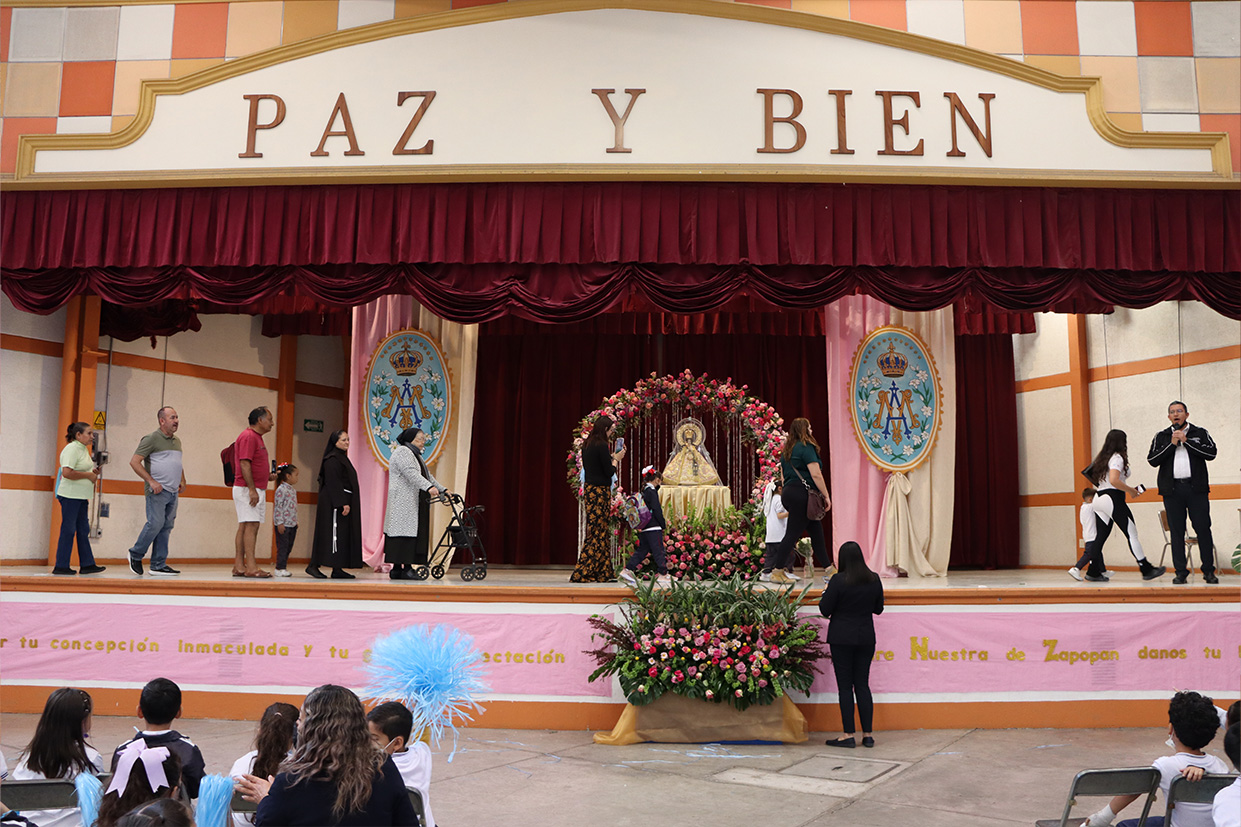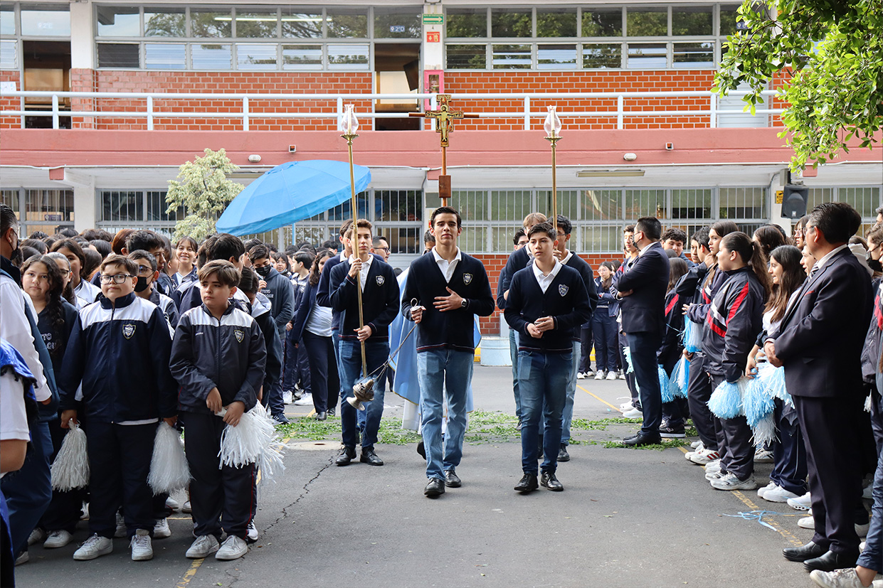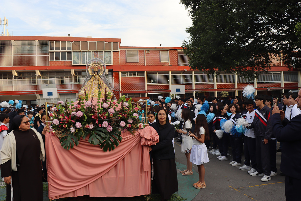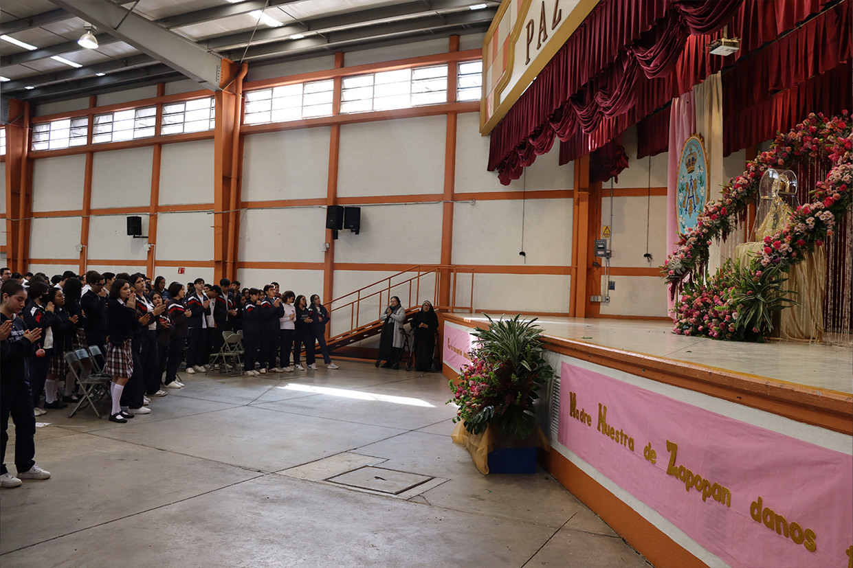 Hoy, día de gracia y bendición para nuestro colegio porque la Madre de Dios, la Generala y Pacificadora de Jalisco nos viene a visitar, pedimos que inunde nuestra vida, nuestras familias, nuestra comunidad educativa con toda clase de bienes materiales y espirituales. Que pida a su querido hijo, Jesús Nuestro Salvador, que nos conceda su espíritu para que actuemos según su voluntad para poder al final de nuestras vidas llegar a ver a la Santa Trinida: Padre, Hijo Espíritu Santo con su luz eterna, y vivir para siempre en la morada de los justos.