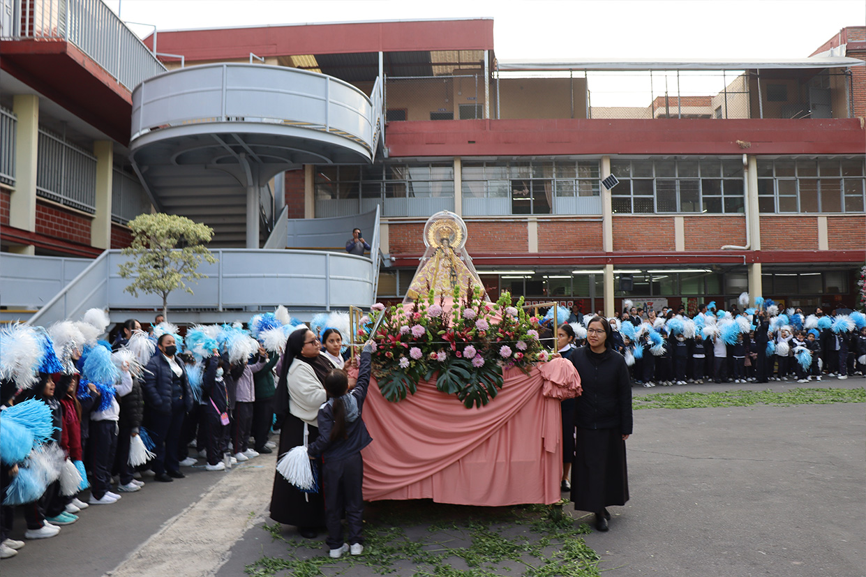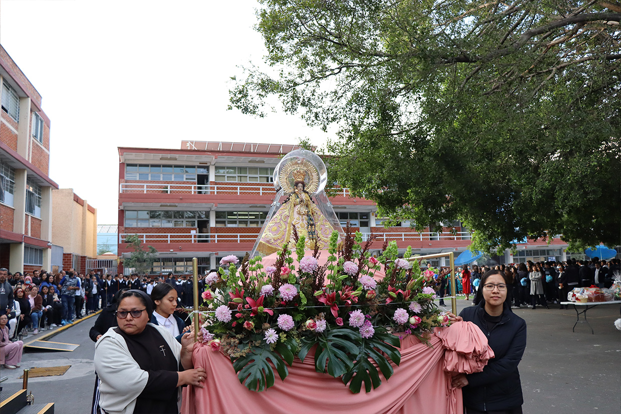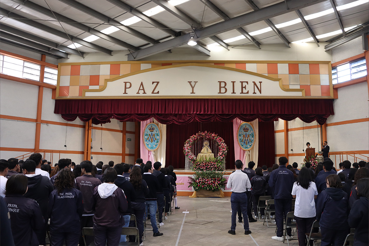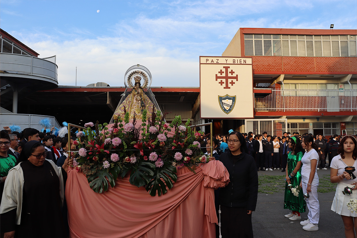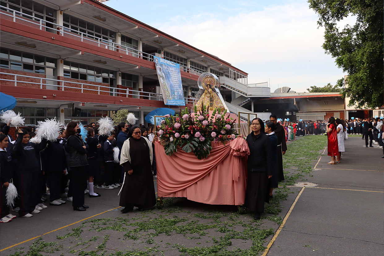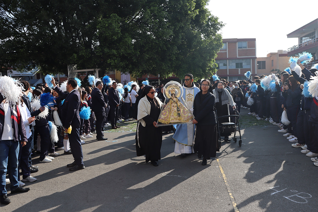 Hoy, día de gracia y bendición para nuestro colegio porque la Madre de Dios, la Generala y Pacificadora de Jalisco nos viene a visitar, pedimos que inunde nuestra vida, nuestras familias, nuestra comunidad educativa con toda clase de bienes materiales y espirituales. Que pida a su querido hijo, Jesús Nuestro Salvador, que nos conceda su espíritu para que actuemos según su voluntad para poder al final de nuestras vidas llegar a ver a la Santa Trinida: Padre, Hijo Espíritu Santo con su luz eterna, y vivir para siempre en la morada de los justos.