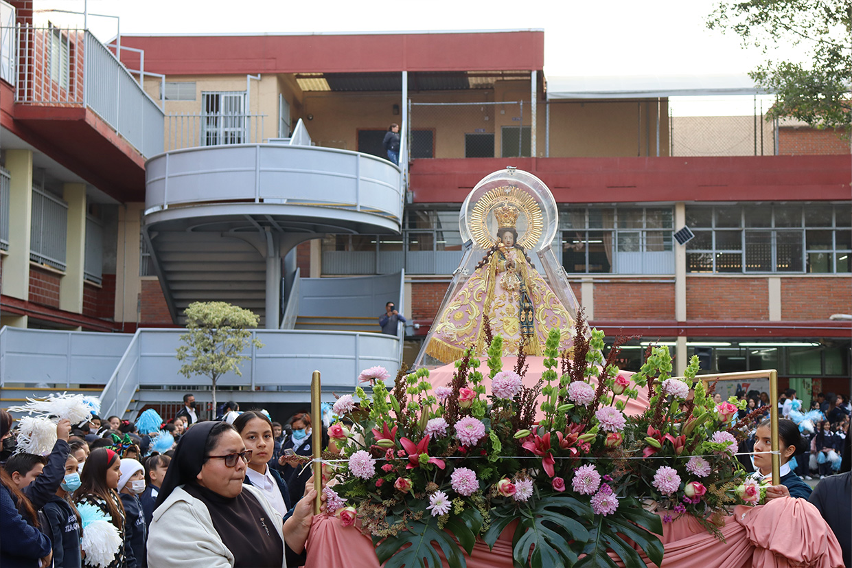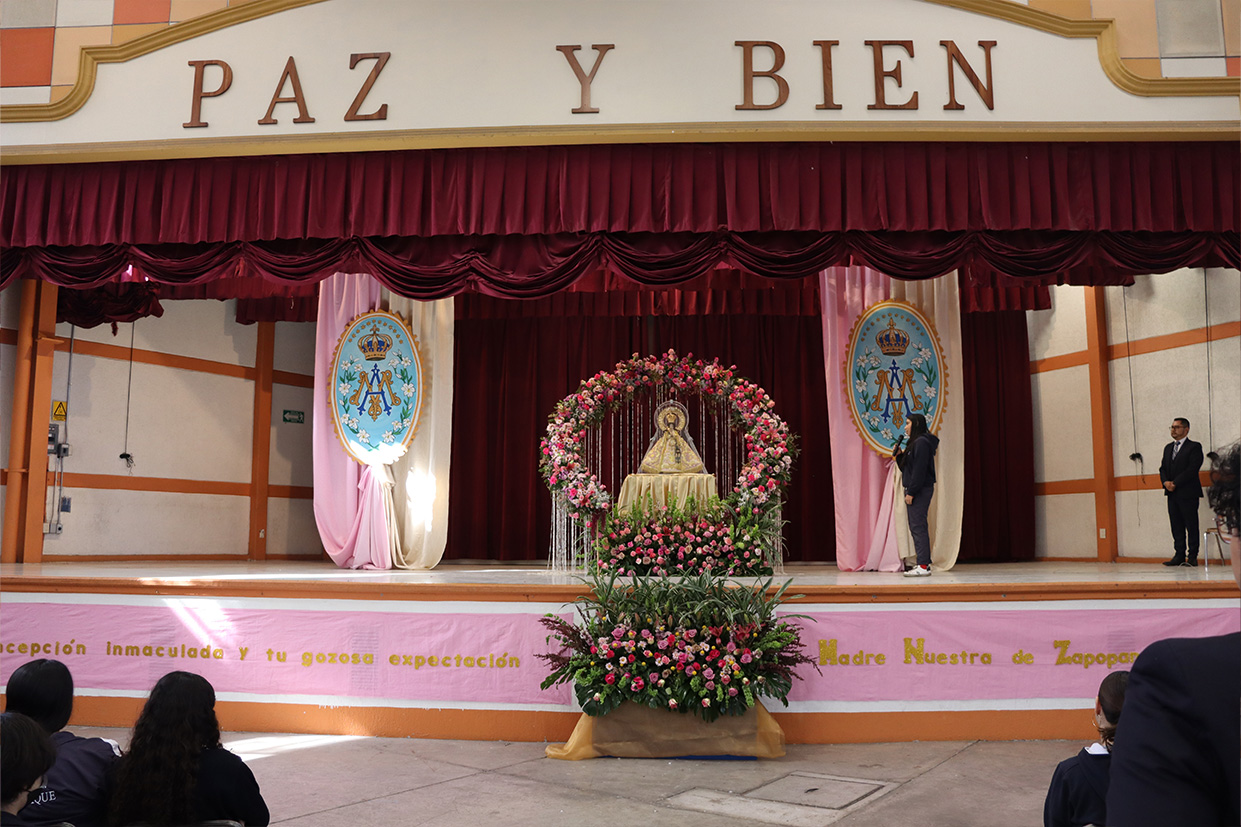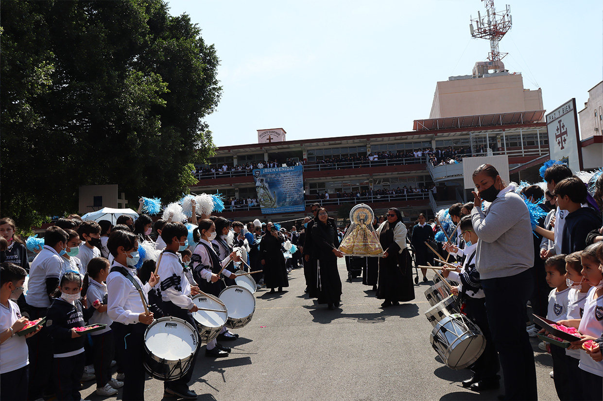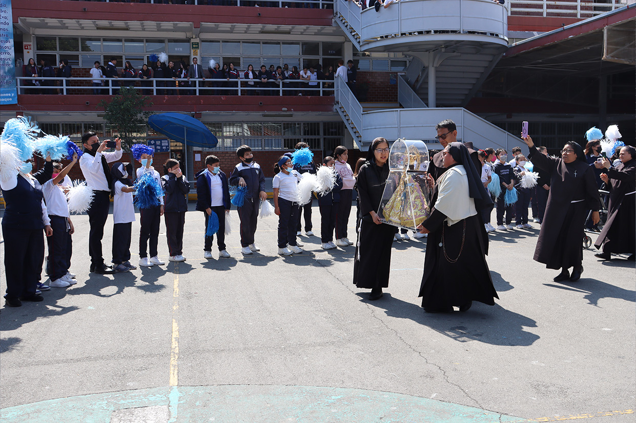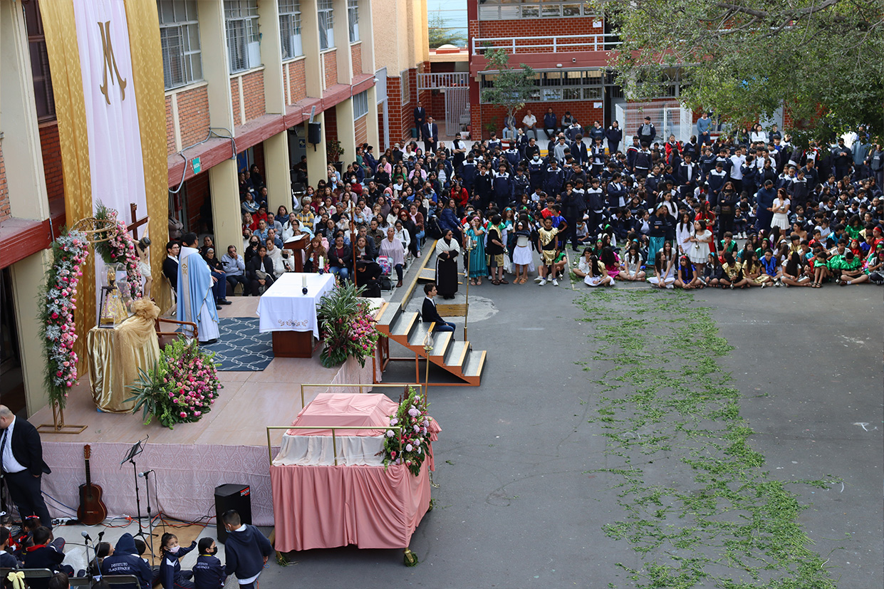 Hoy, día de gracia y bendición para nuestro colegio porque la Madre de Dios, la Generala y Pacificadora de Jalisco nos viene a visitar, pedimos que inunde nuestra vida, nuestras familias, nuestra comunidad educativa con toda clase de bienes materiales y espirituales. Que pida a su querido hijo, Jesús Nuestro Salvador, que nos conceda su espíritu para que actuemos según su voluntad para poder al final de nuestras vidas llegar a ver a la Santa Trinida: Padre, Hijo Espíritu Santo con su luz eterna, y vivir para siempre en la morada de los justos.