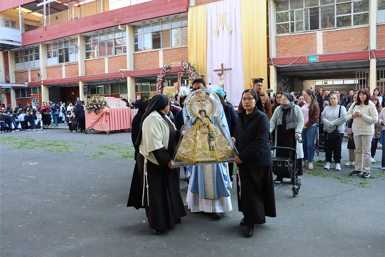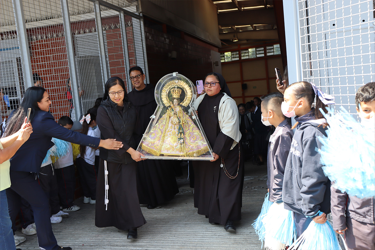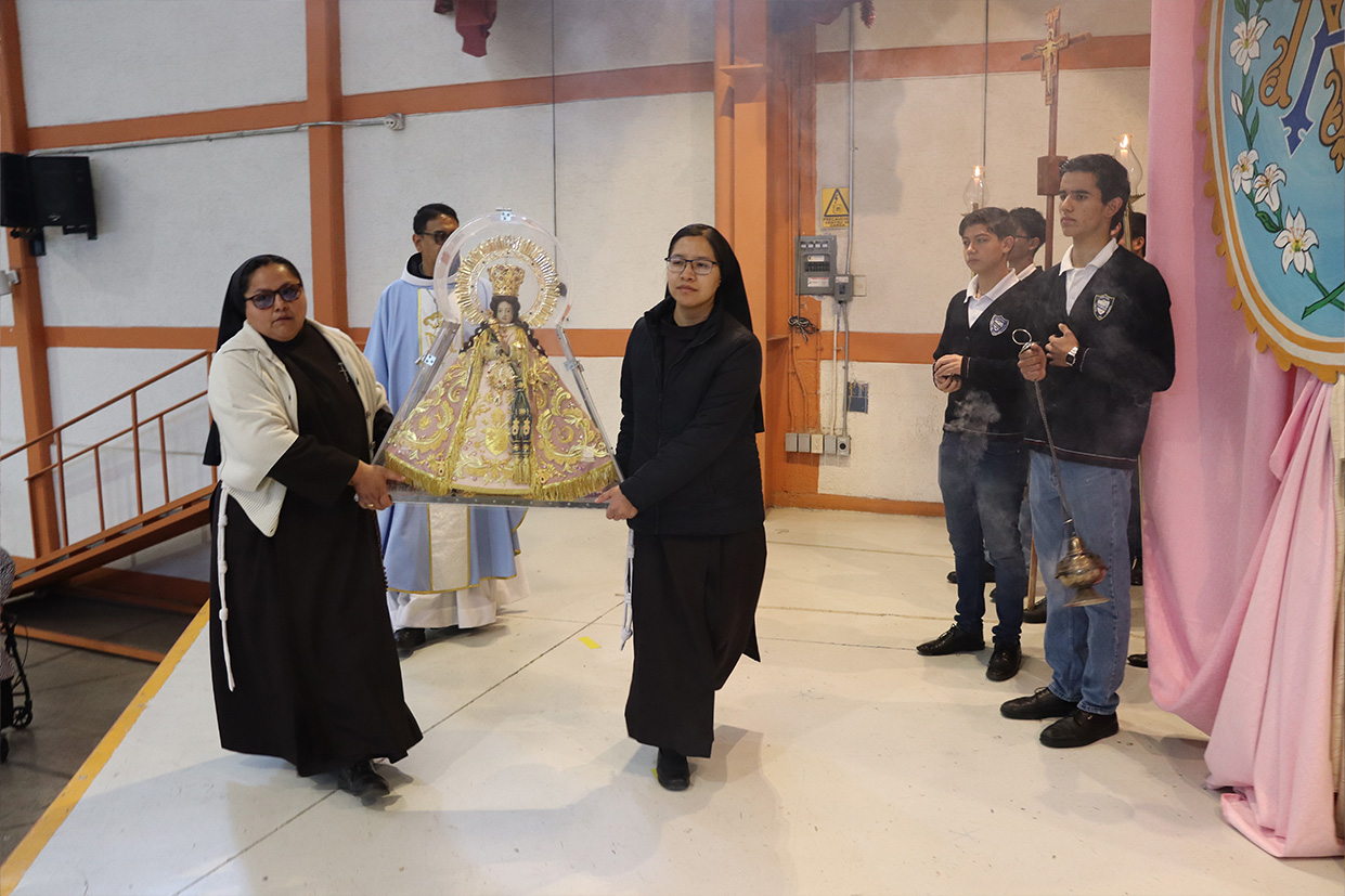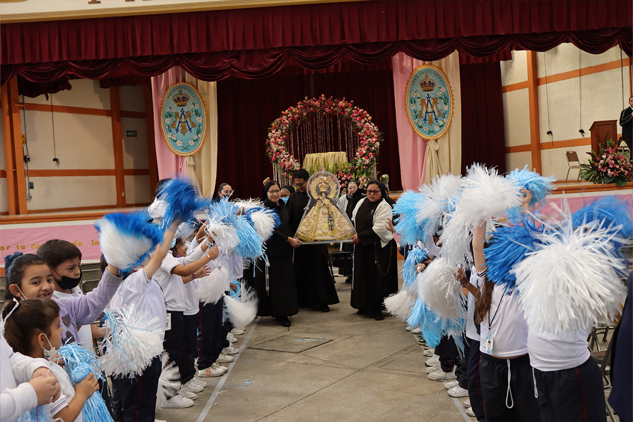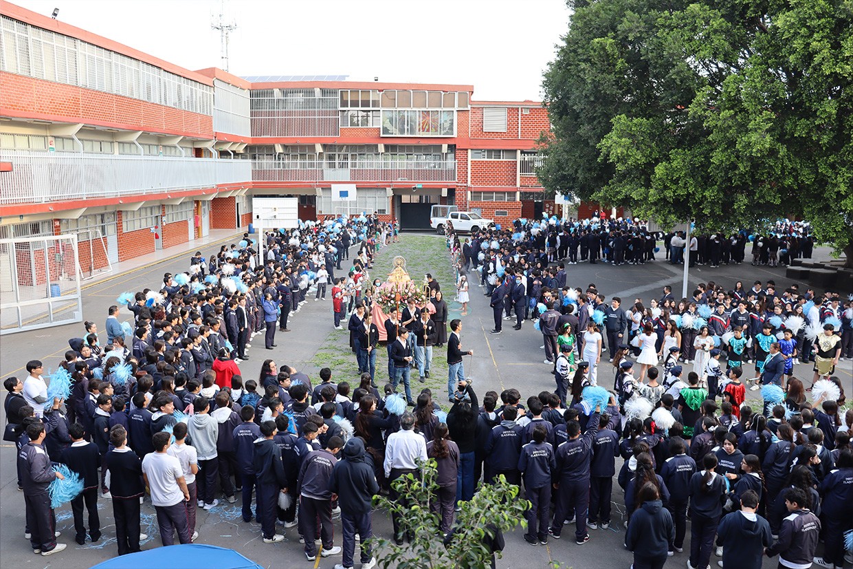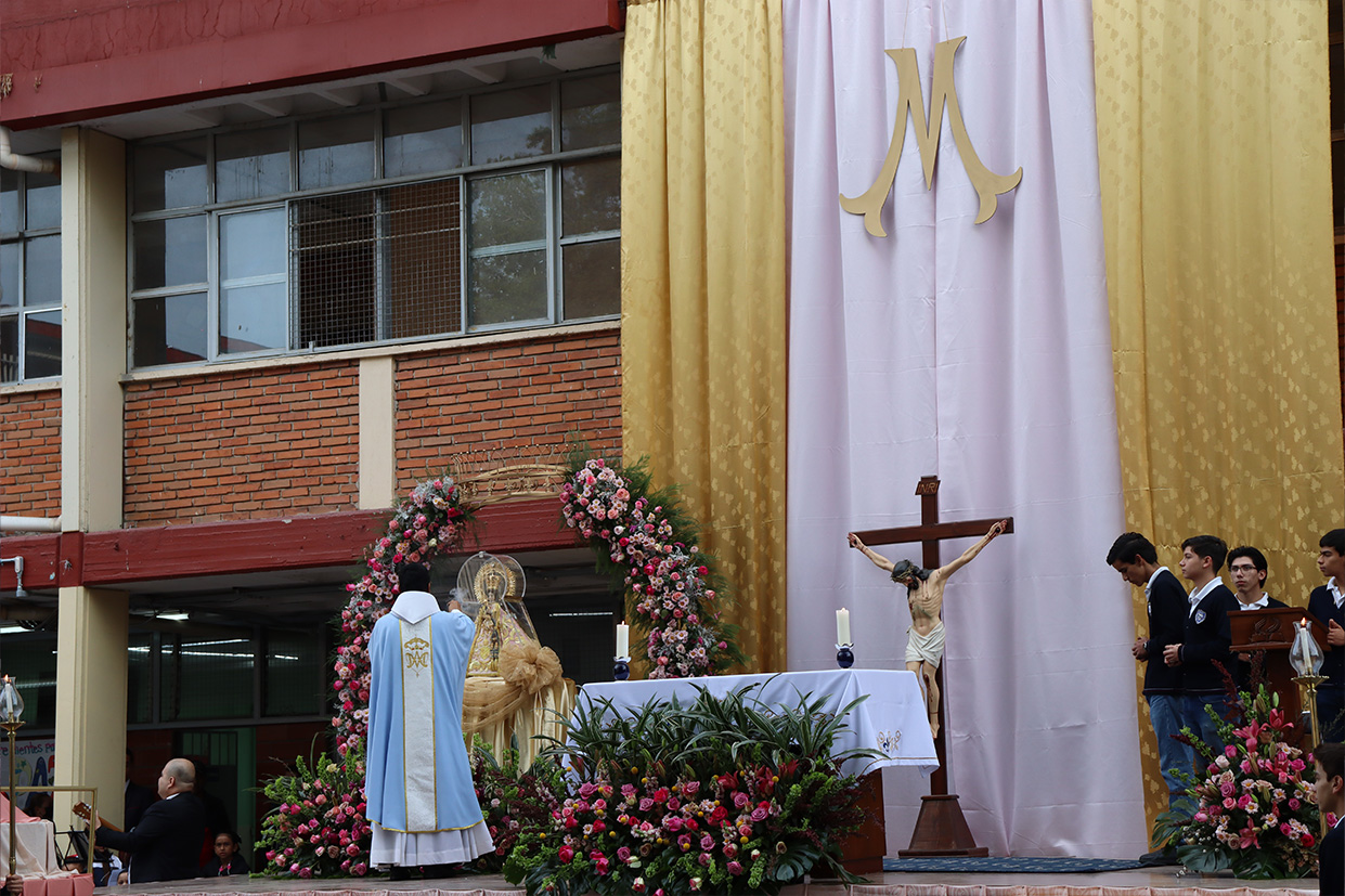 Hoy, día de gracia y bendición para nuestro colegio porque la Madre de Dios, la Generala y Pacificadora de Jalisco nos viene a visitar, pedimos que inunde nuestra vida, nuestras familias, nuestra comunidad educativa con toda clase de bienes materiales y espirituales. Que pida a su querido hijo, Jesús Nuestro Salvador, que nos conceda su espíritu para que actuemos según su voluntad para poder al final de nuestras vidas llegar a ver a la Santa Trinida: Padre, Hijo Espíritu Santo con su luz eterna, y vivir para siempre en la morada de los justos.