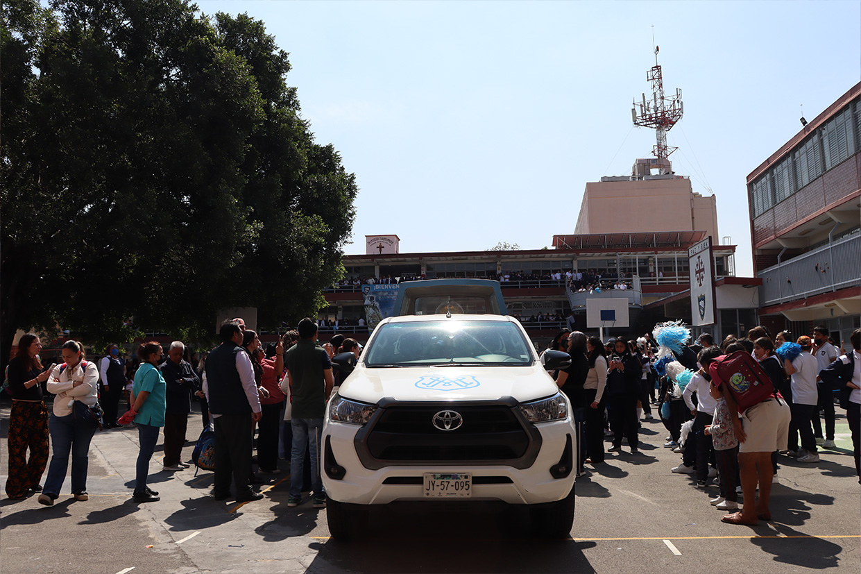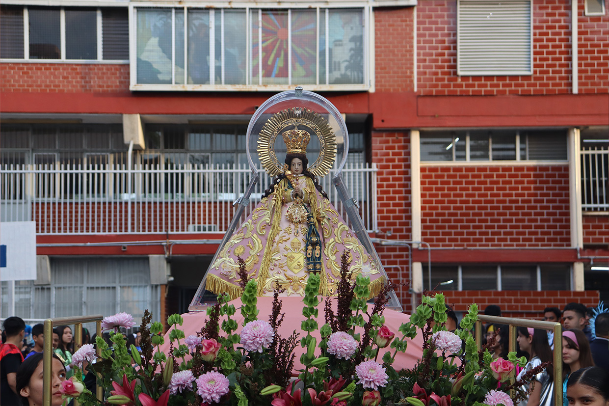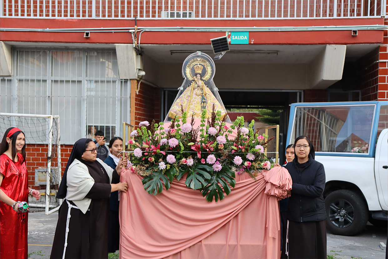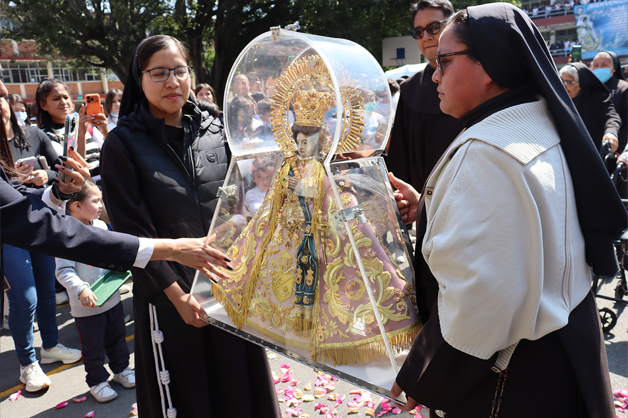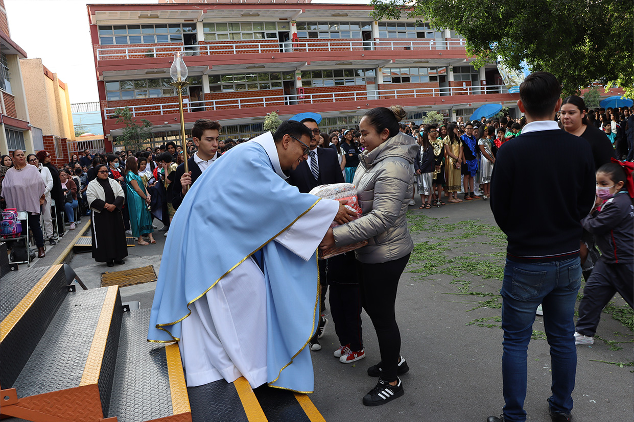 Hoy, día de gracia y bendición para nuestro colegio porque la Madre de Dios, la Generala y Pacificadora de Jalisco nos viene a visitar, pedimos que inunde nuestra vida, nuestras familias, nuestra comunidad educativa con toda clase de bienes materiales y espirituales. Que pida a su querido hijo, Jesús Nuestro Salvador, que nos conceda su espíritu para que actuemos según su voluntad para poder al final de nuestras vidas llegar a ver a la Santa Trinida: Padre, Hijo Espíritu Santo con su luz eterna, y vivir para siempre en la morada de los justos.
