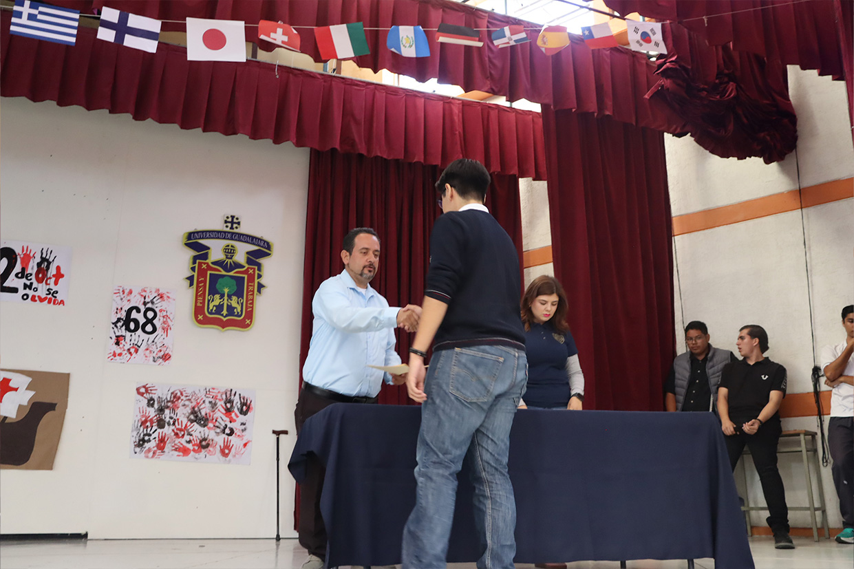 Al termino del evento se entregaron los reconocimientos a los ganadores del concurso de escoltas de la zona, del Sistema de Educación Media Superior de la Universidad de Guadalajara y a su maestro entrenador Lic. Emigdio Alcalá Cuevas. De igual modo se entregó el reconocimiento que envía la UDG a los participantes y docente capacitador profe Richard de Jesús Almonte Castaños, de la Segunda Olimpiada Estatal de Gramática del Español realizada el 26 de septiembre del 2025.