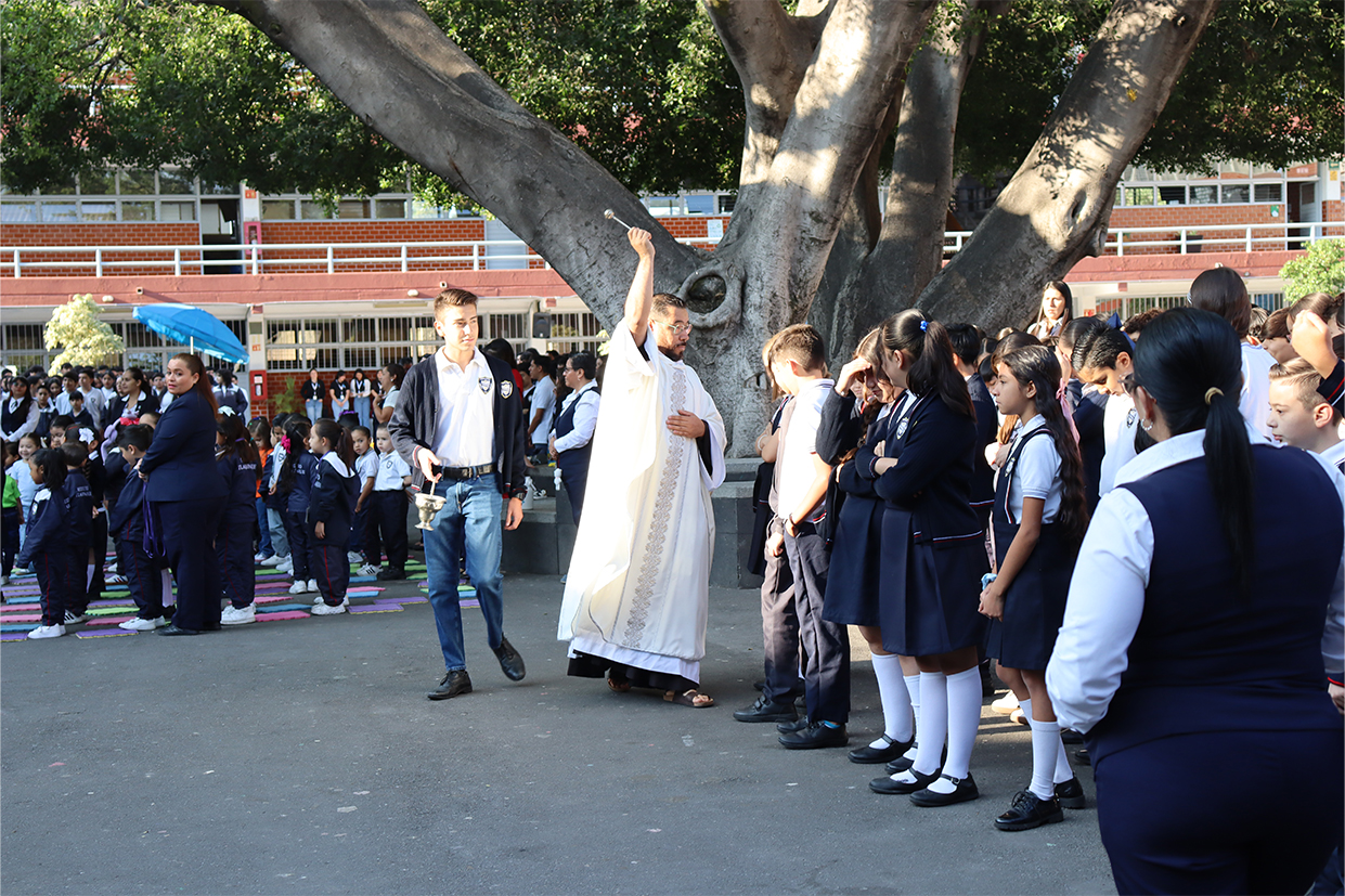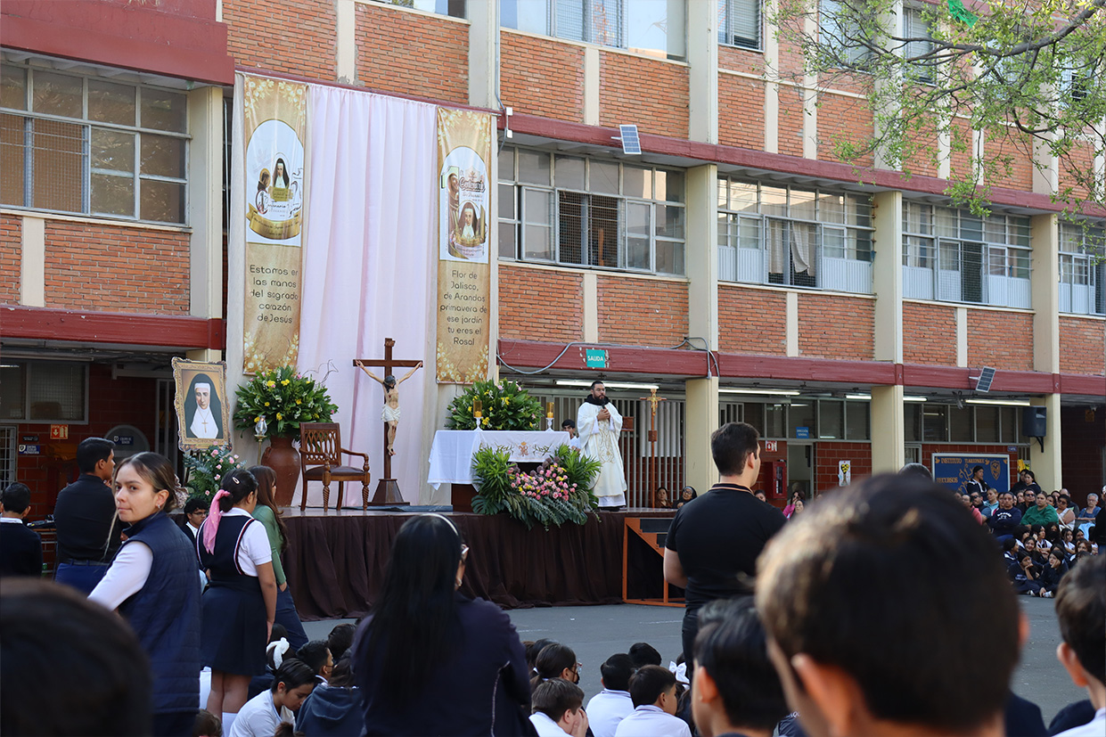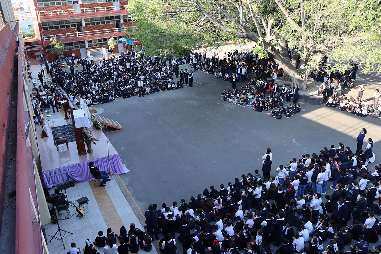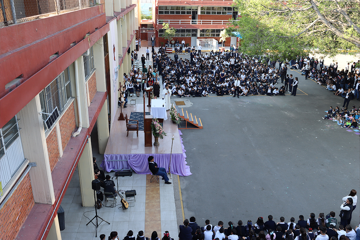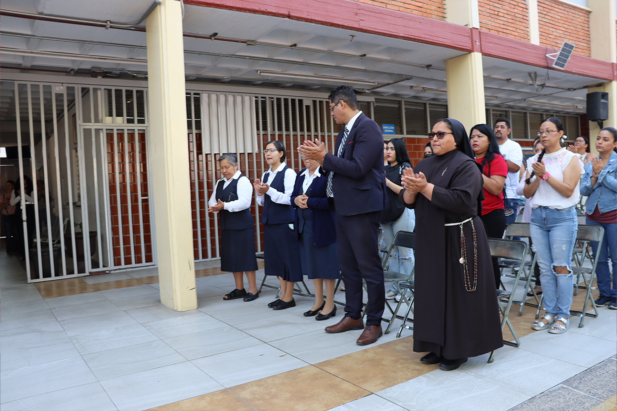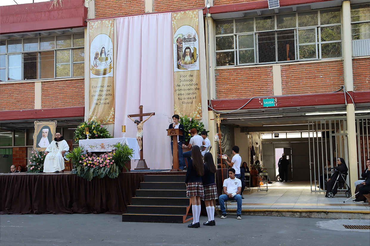 Hoy, día de gracia y bendición para nuestro colegio porque la Madre de Dios, la Generala y Pacificadora de Jalisco nos viene a visitar, pedimos que inunde nuestra vida, nuestras familias, nuestra comunidad educativa con toda clase de bienes materiales y espirituales. Que pida a su querido hijo, Jesús Nuestro Salvador, que nos conceda su espíritu para que actuemos según su voluntad para poder al final de nuestras vidas llegar a ver a la Santa Trinida: Padre, Hijo Espíritu Santo con su luz eterna, y vivir para siempre en la morada de los justos.