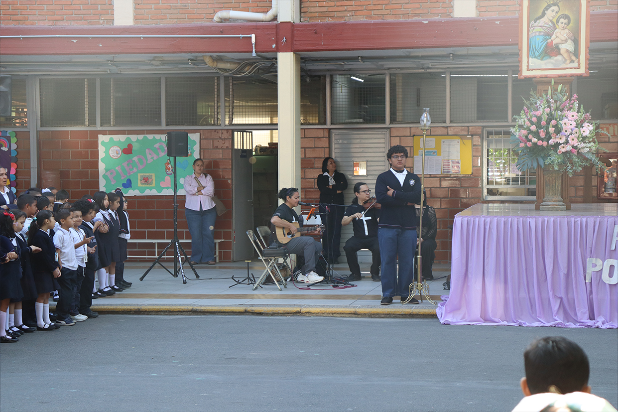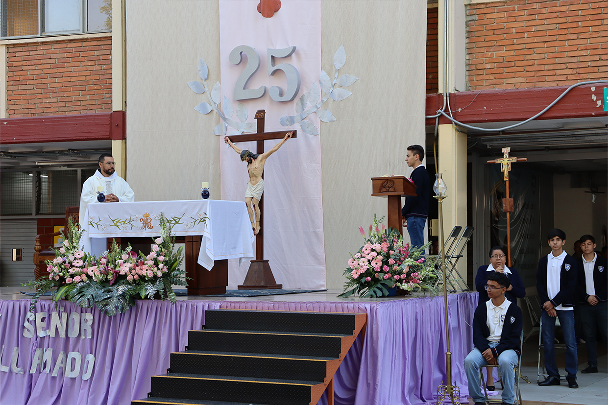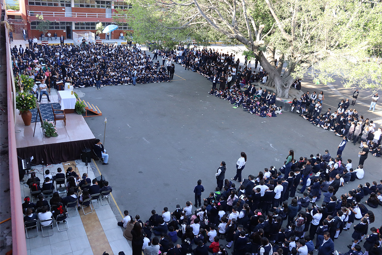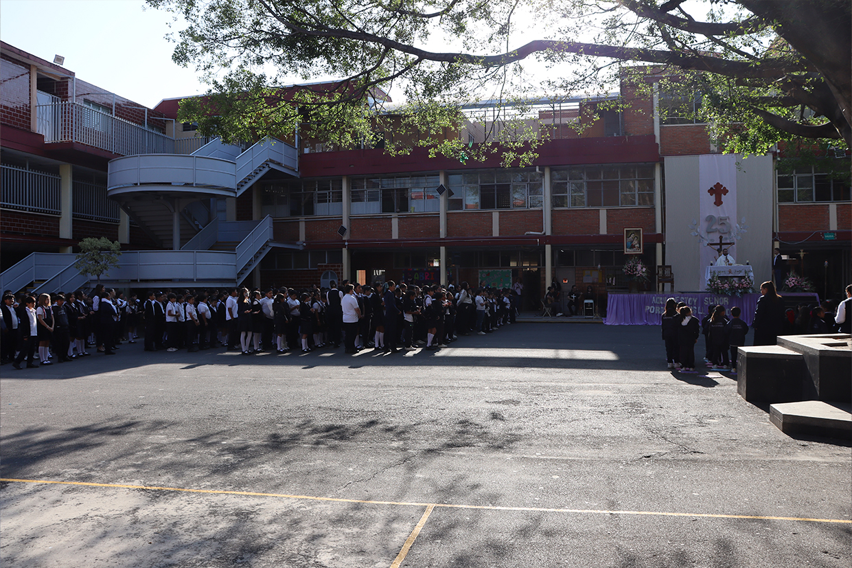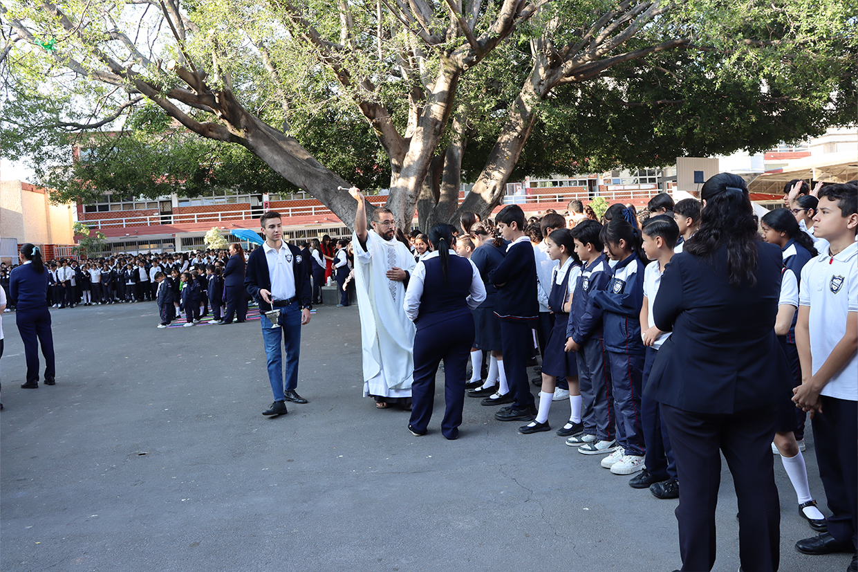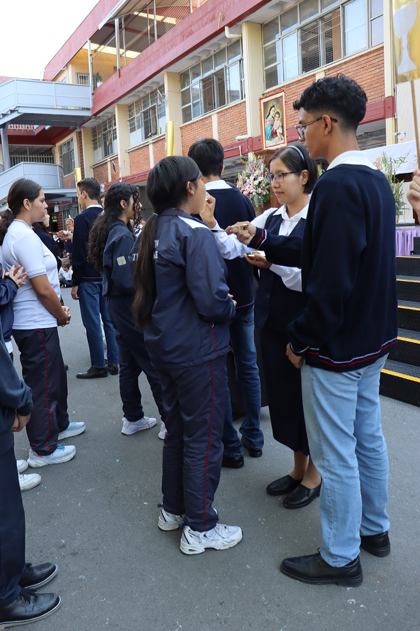 Hoy, día de gracia y bendición para nuestro colegio porque la Madre de Dios, la Generala y Pacificadora de Jalisco nos viene a visitar, pedimos que inunde nuestra vida, nuestras familias, nuestra comunidad educativa con toda clase de bienes materiales y espirituales. Que pida a su querido hijo, Jesús Nuestro Salvador, que nos conceda su espíritu para que actuemos según su voluntad para poder al final de nuestras vidas llegar a ver a la Santa Trinida: Padre, Hijo Espíritu Santo con su luz eterna, y vivir para siempre en la morada de los justos.