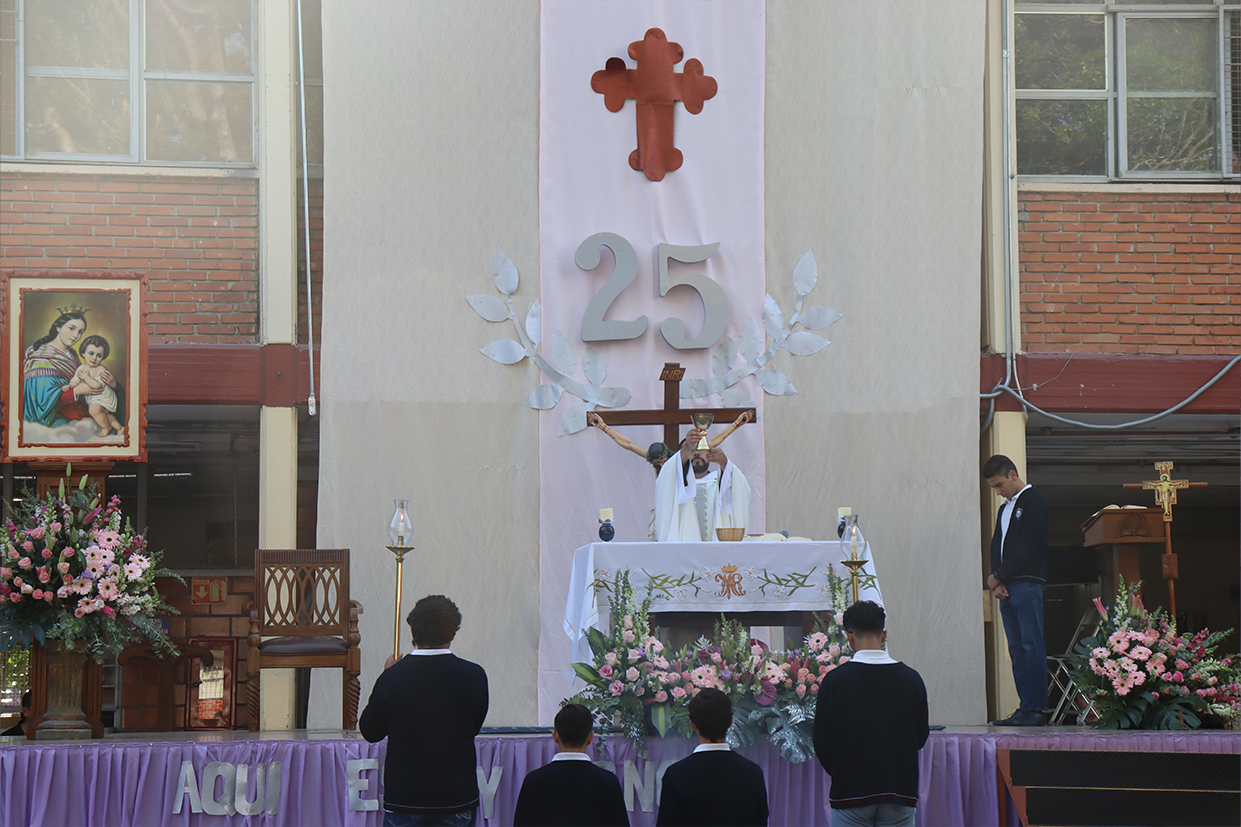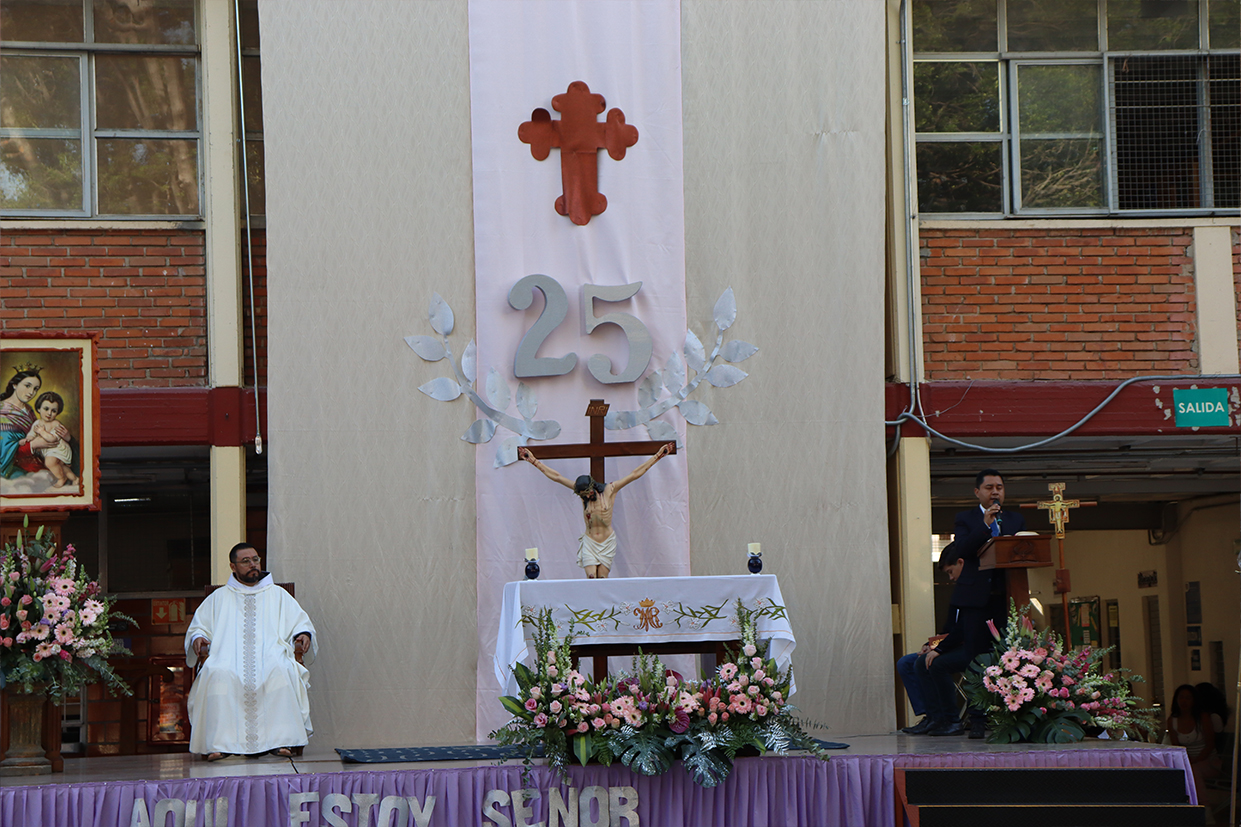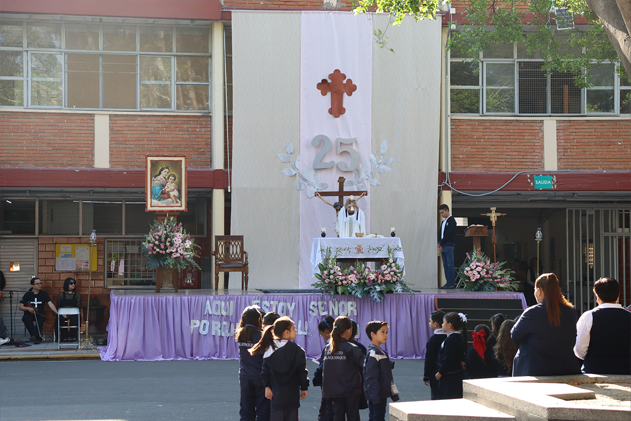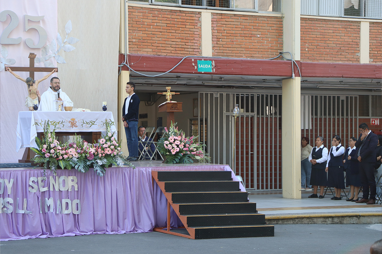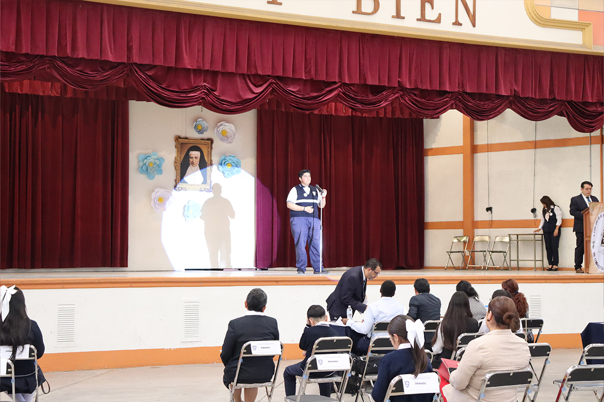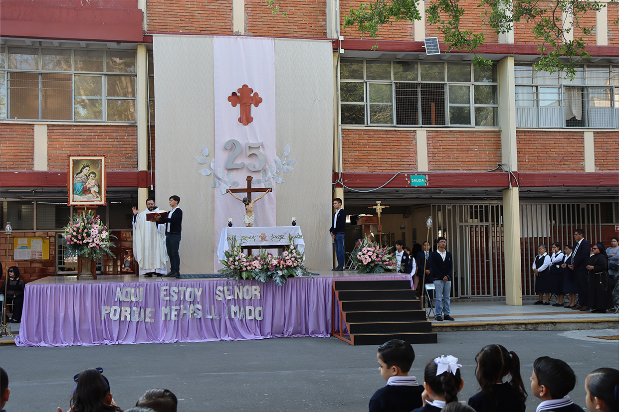 Hoy, día de gracia y bendición para nuestro colegio porque la Madre de Dios, la Generala y Pacificadora de Jalisco nos viene a visitar, pedimos que inunde nuestra vida, nuestras familias, nuestra comunidad educativa con toda clase de bienes materiales y espirituales. Que pida a su querido hijo, Jesús Nuestro Salvador, que nos conceda su espíritu para que actuemos según su voluntad para poder al final de nuestras vidas llegar a ver a la Santa Trinida: Padre, Hijo Espíritu Santo con su luz eterna, y vivir para siempre en la morada de los justos.
