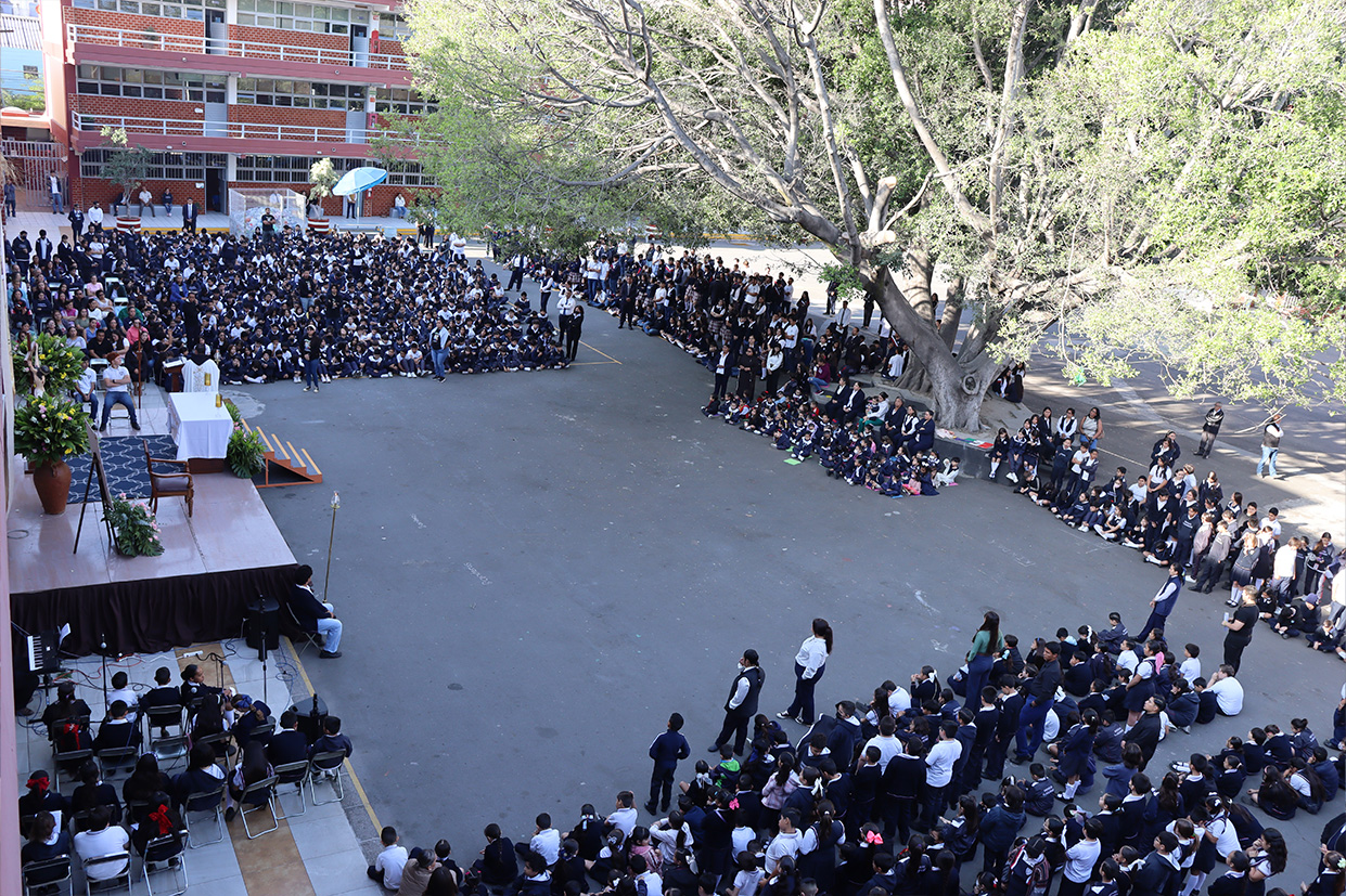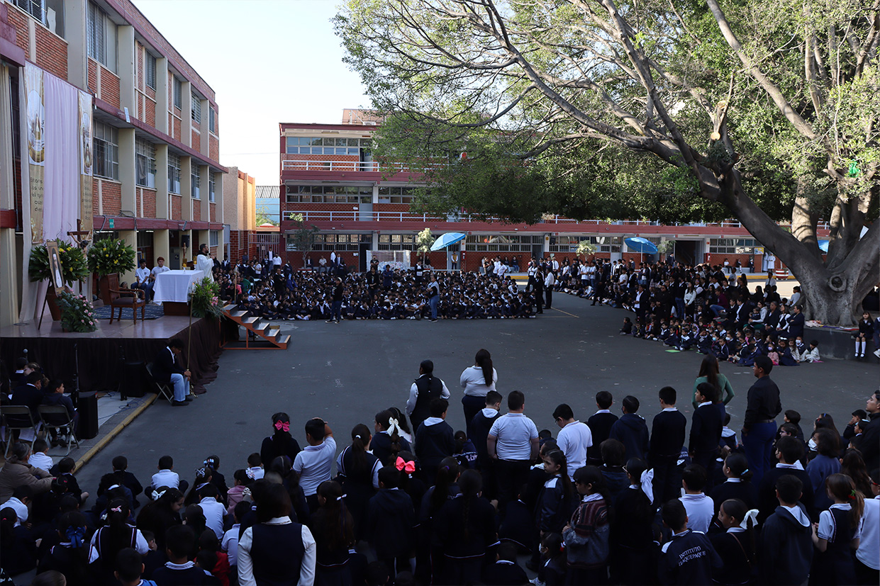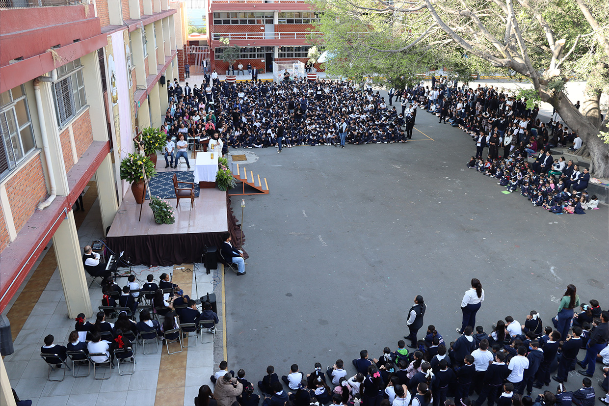 Se realizó el día 12 de diciembre en el patio cívico de la institución con el objetivo de honrar y recordar a la Virgen de Guadalupe en este día de fiesta nacional, mediante la celebración el Santo Sacrificio de su hijo Jesús, para cultivar en nuestros alumnos la devoción a Nuestra madre de Guadalupe, a la morenita del Tepeyac, en el entendido que a Jesús se llega más fácil por María su madre, que Jesús es Nuestro Dios y Salvador, único mediador, a Él la gloria y el poder por los siglos de los siglos.